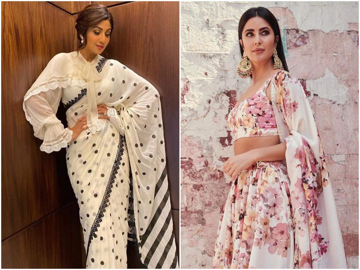 Katrina Kaif ushers in festive fervour along with her white floral up to date lehenga. She has dressed it as much as perfection with extra-large chaand balis