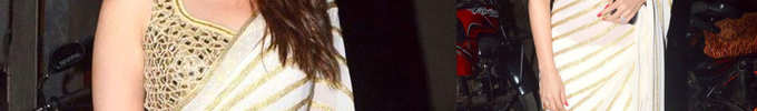 Bebo glammed it up with an ivory sari that includes sequined stripes in gold sequins. The actress teamed it up with a press release gold shirt and accomplished her look with basic nude lips and gentle curls.