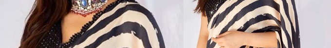 Kajol additionally made a case for a black and white striped sari with a scallop design border. The actress teamed it up with a shimmery black shirt. Her look was rounded off with a press release choker and beachy waves.