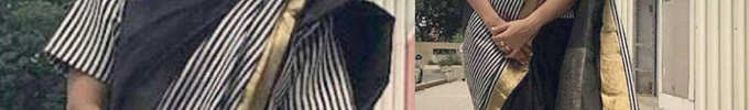 Neha made a recent trend assertion as she sported this monochrome striped sari with gold detailing. She teamed up this black and white drape with an outsized shirt and a glossy low bun trying stylish as ever.
