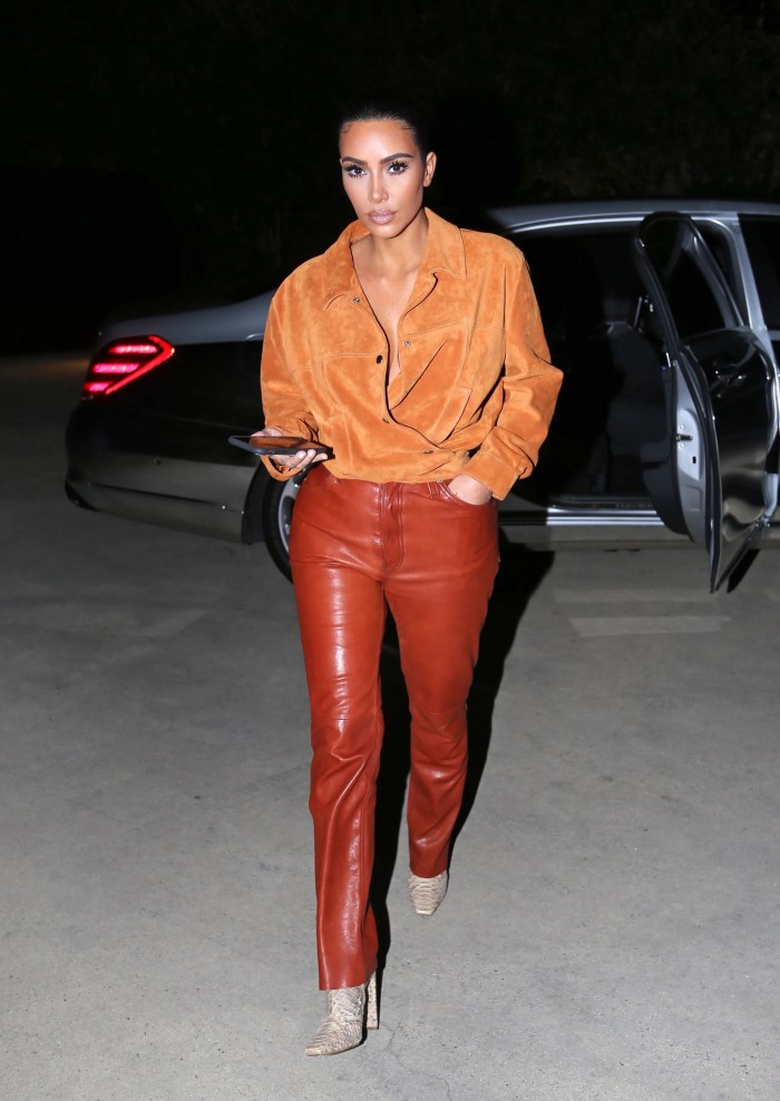Actuality icoon Kim Kardashian werd afgelopen week gespot in een geweldige herfstoutfit. Eentje waar je direct door geïnspireerd raakt, need ‘hallo’ kunnen we er allemaal zo goed uit zien? In een prachtige suède shirt, een leren broek en python enkellaarsjes stal Kim de present. Ondanks de relatief eenvoudige look heeft de shirt een attractive element door de diepe halslijn. De kleuren maken een ultiem herfstpalet waardoor we direct zin krijgen in het najaar. De leren broek is van Helmut Lang en de enkellaarsjes zijn ontworpen door manlief ’s luxurious merk Yeezy. Wat vind jij van Kim’s outfit?